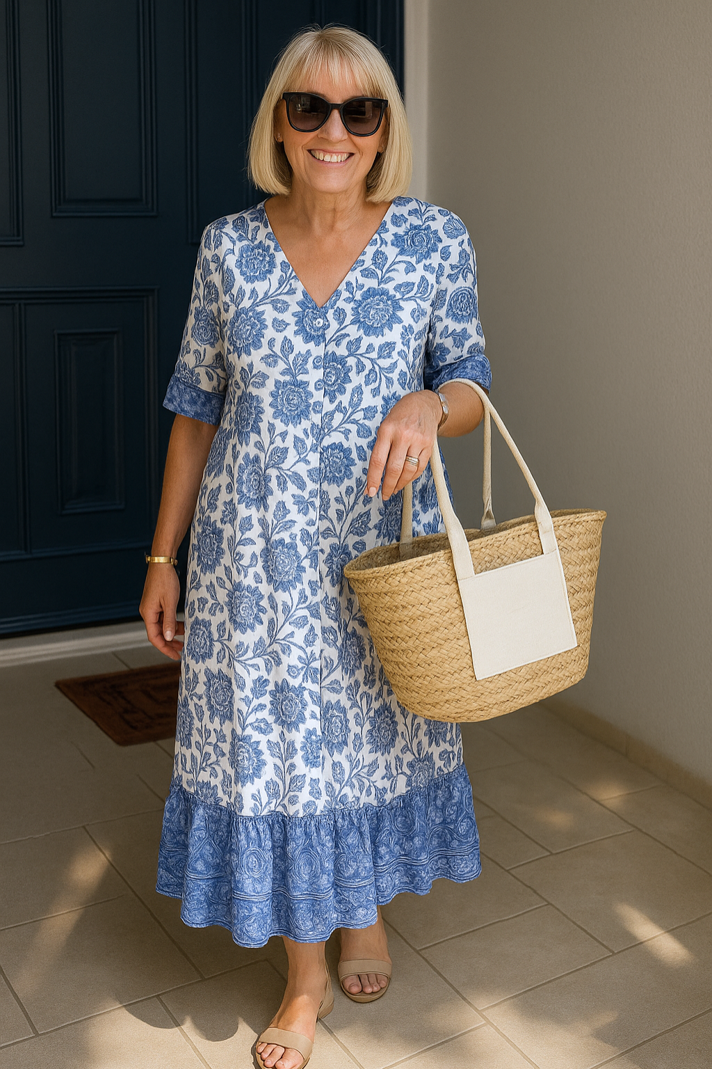 De luchtige Rita™ jurk brengt moeiteloze bohemian elegantie naar je garderobe. Met haar delicate lavendelblauwe bloemenprint en flatterende pasvorm is deze jurk een ode aan natuurlijke vrouwelijkheid. Perfect voor zonnige dagen, ontspannen strandwandelingen of stijlvolle terrasafspraken, deze jurk zal je nieuwe zomerse favoriet zijn.